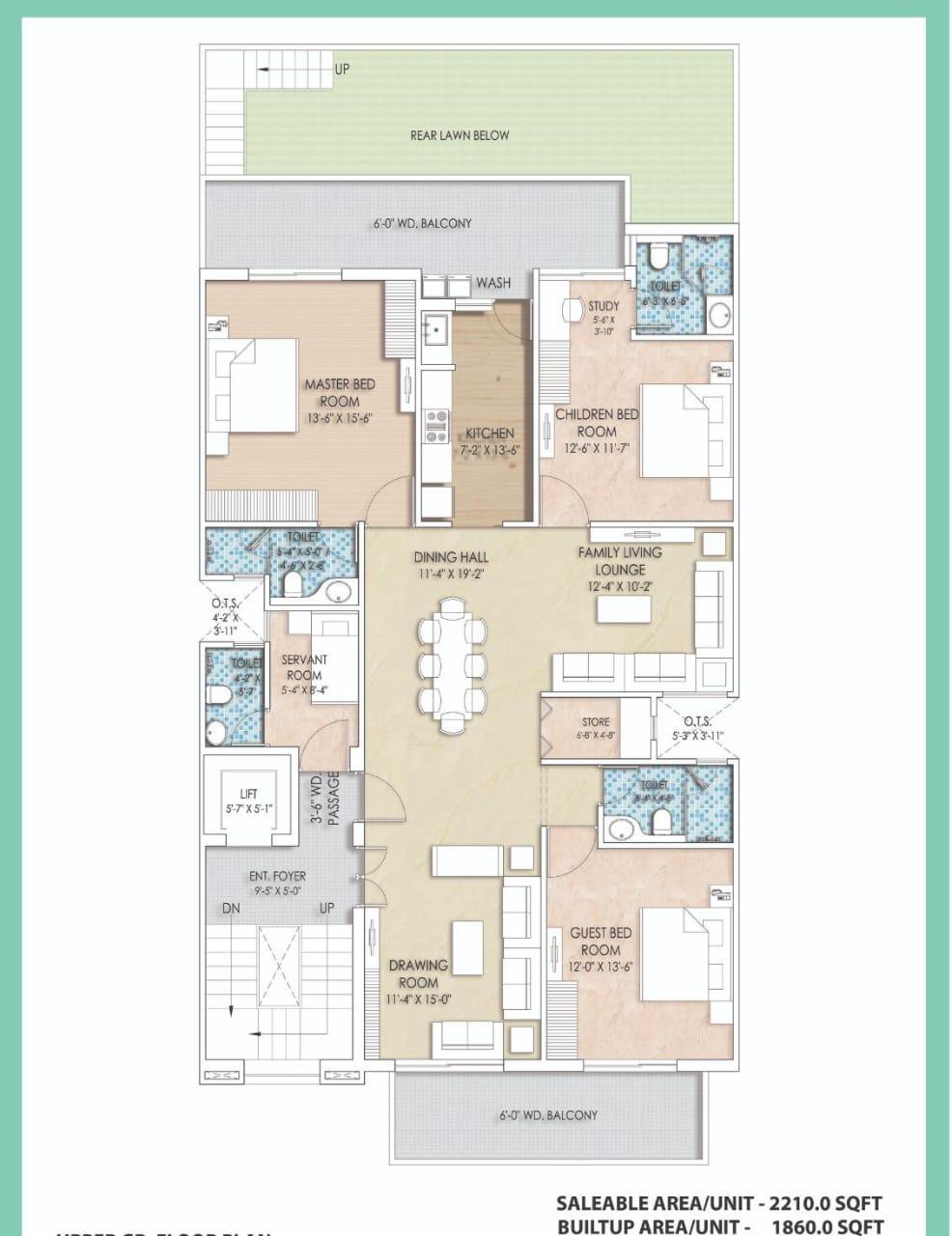 2174 Sq.Ft 4BHK Apartment with Servant in Rishita Manhattan Lucknow
