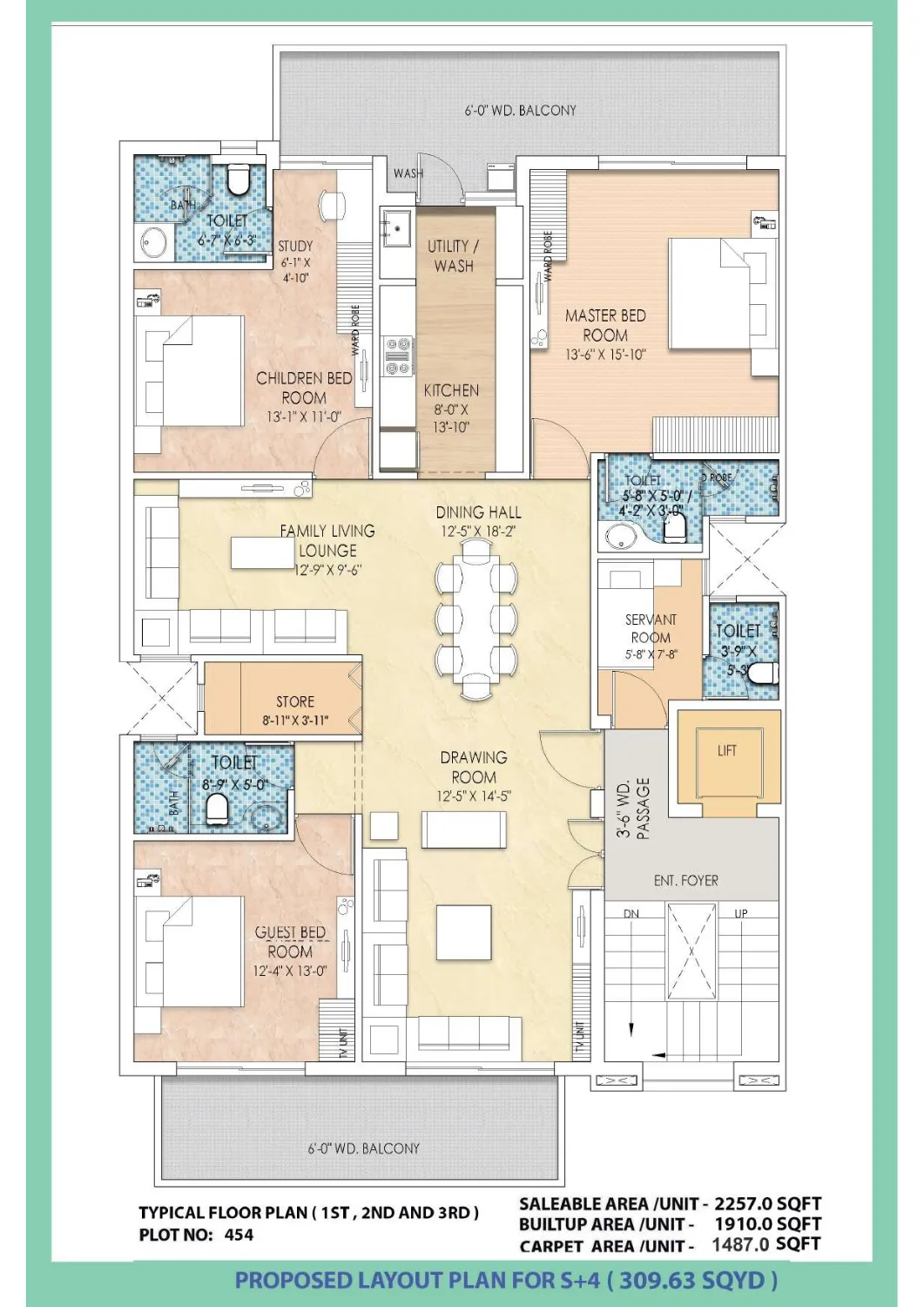 🌿 Step out onto the Balcony, adorned with Anti-Skid Tiles for safety and aesthetics. 🎨 Walls and Ceiling treated with Water Proofing External Paint, ensuring long-lasting beauty. 🚪 Enhance your outdoor experience with the elegant M S Railing.