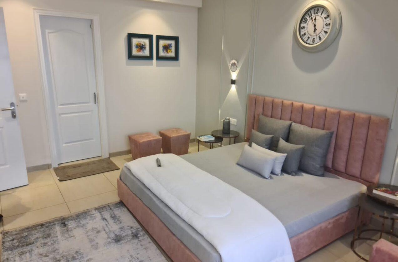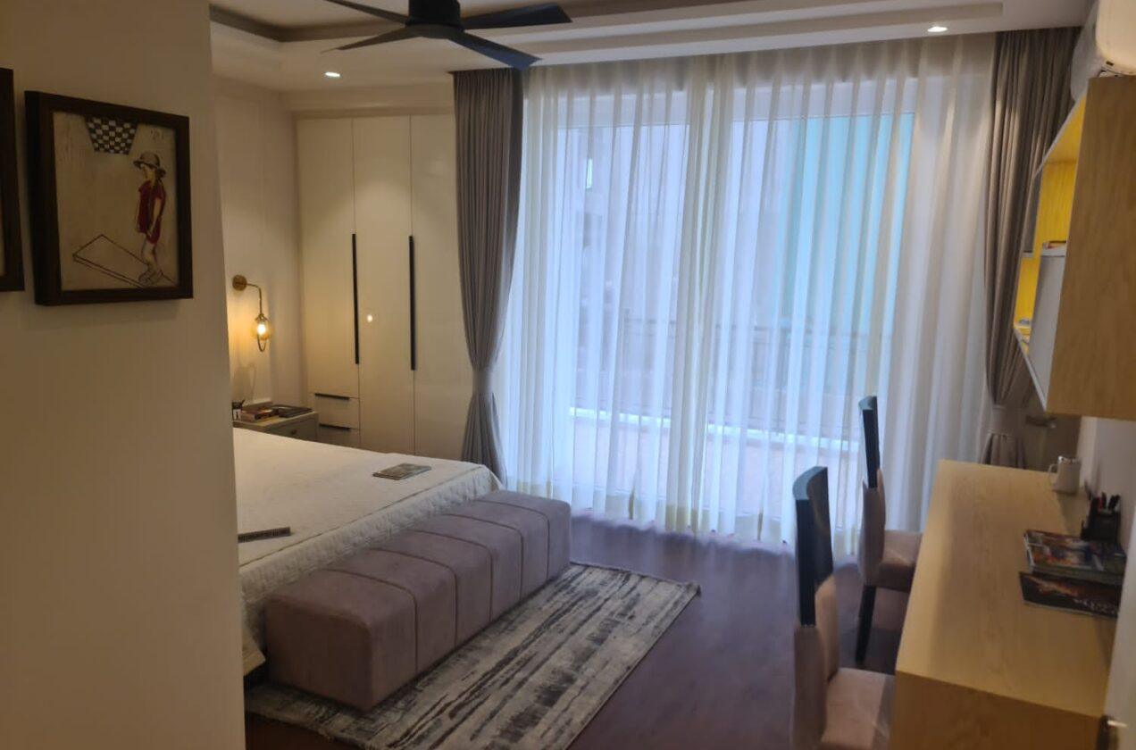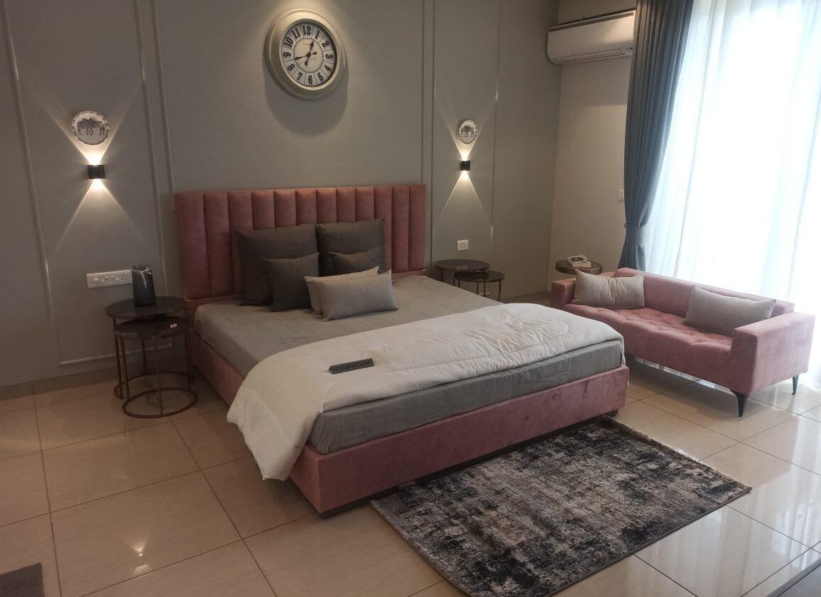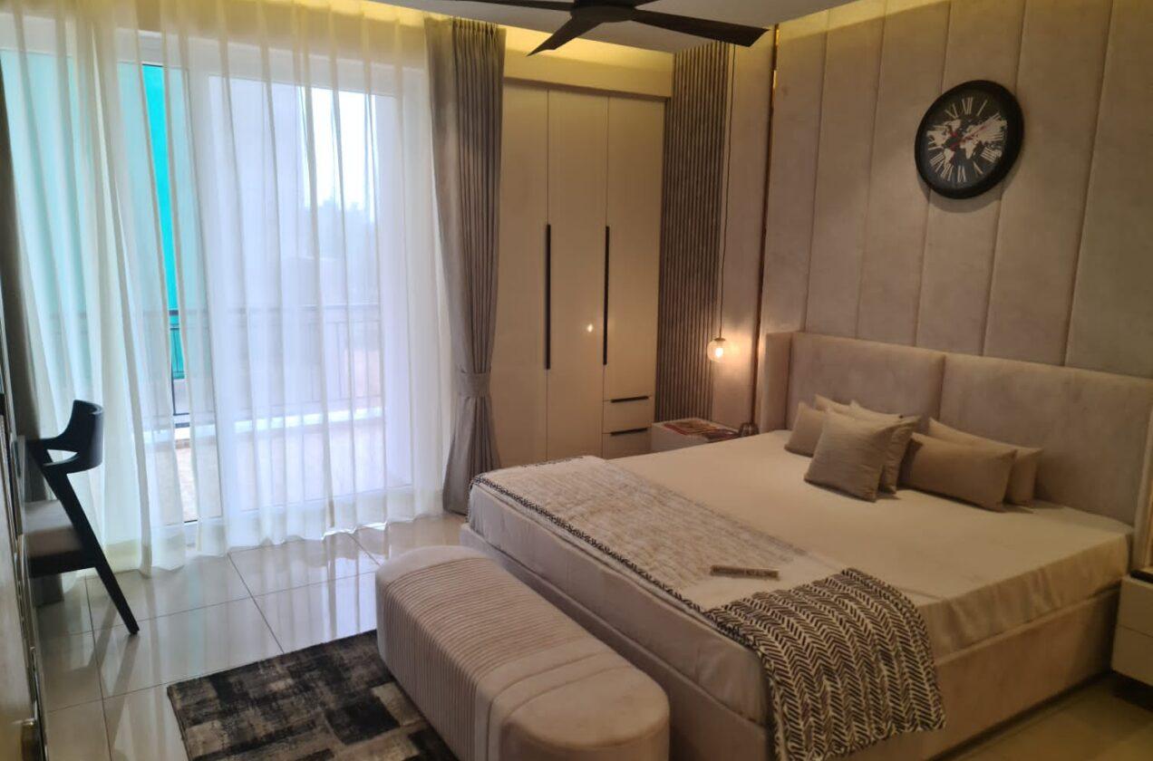🛏️ Indulge in the luxury of Laminated Wooden Flooring, offering both comfort and sophistication. 🌟 Wall Finishes and Ceiling treated with exquisite Plastic Emulsion, adding a touch of refinement. 👚 Organize your essentials effortlessly with the spacious Laminated Wooden Cupboard.